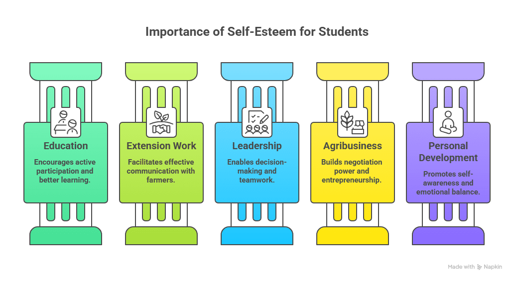 For B.Sc. Agriculture students, self-esteem is vital because they are being trained not only as learners but as future communicators, leaders, and extension agents.