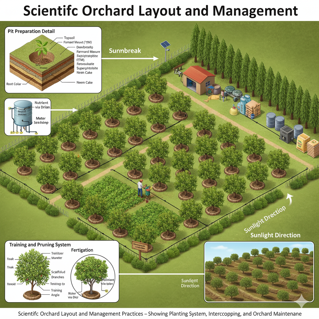 Establishing an orchard is a long-term investment requiring scientific planning, site selection, and systematic management to ensure high yield, quality produce, and profitability. - Orchard establishment combines knowledge of horticulture, soil science, irrigation, crop management, and economics.