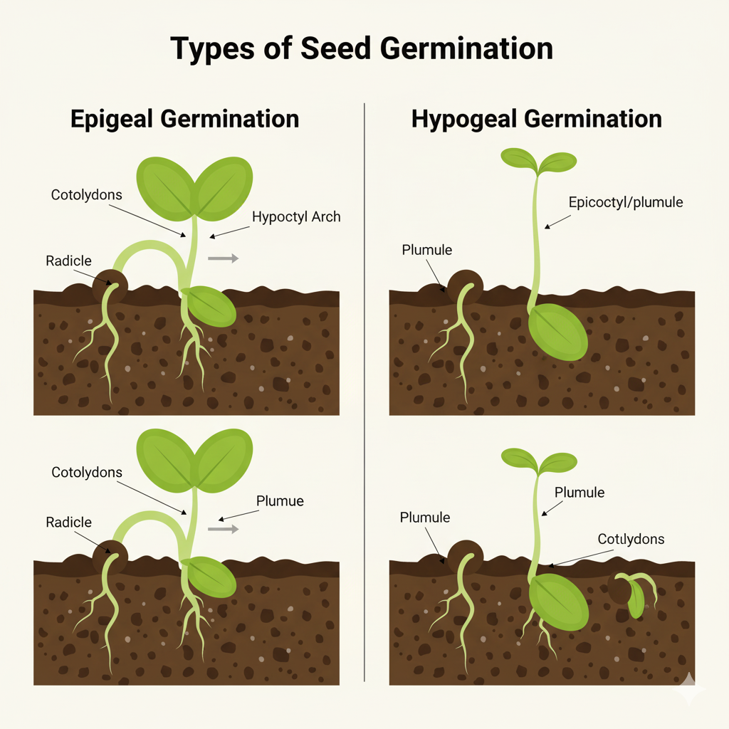 - Growth and Development: Cell elongation of radicle and plumule occurs. New tissues form as the embryo transforms into a seedling.